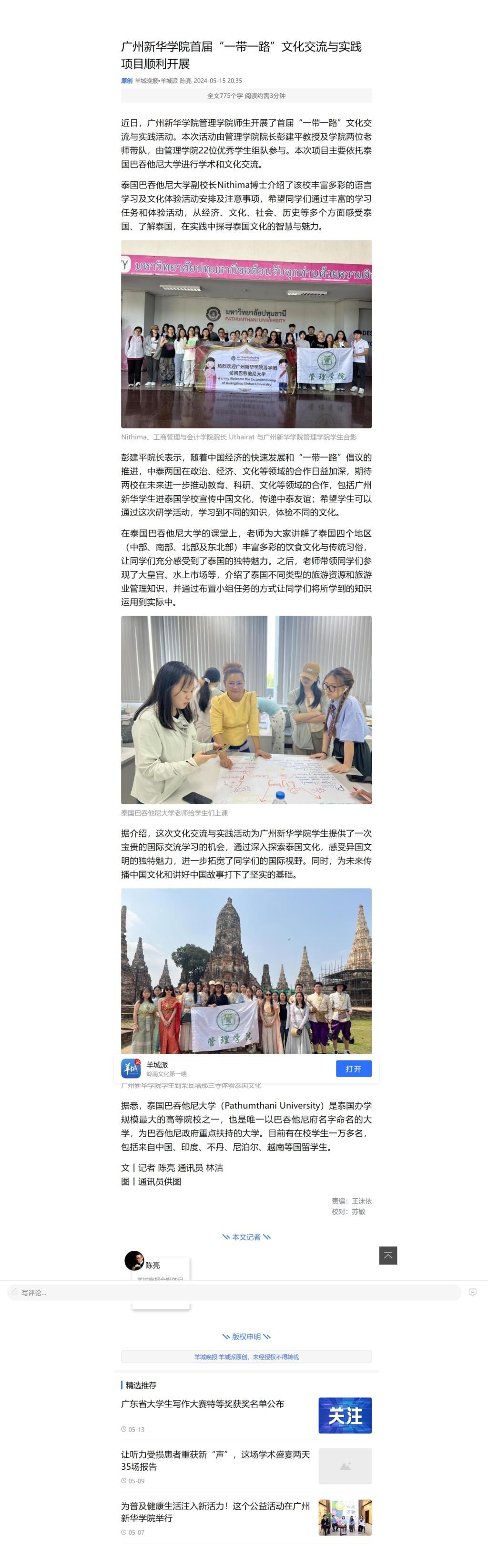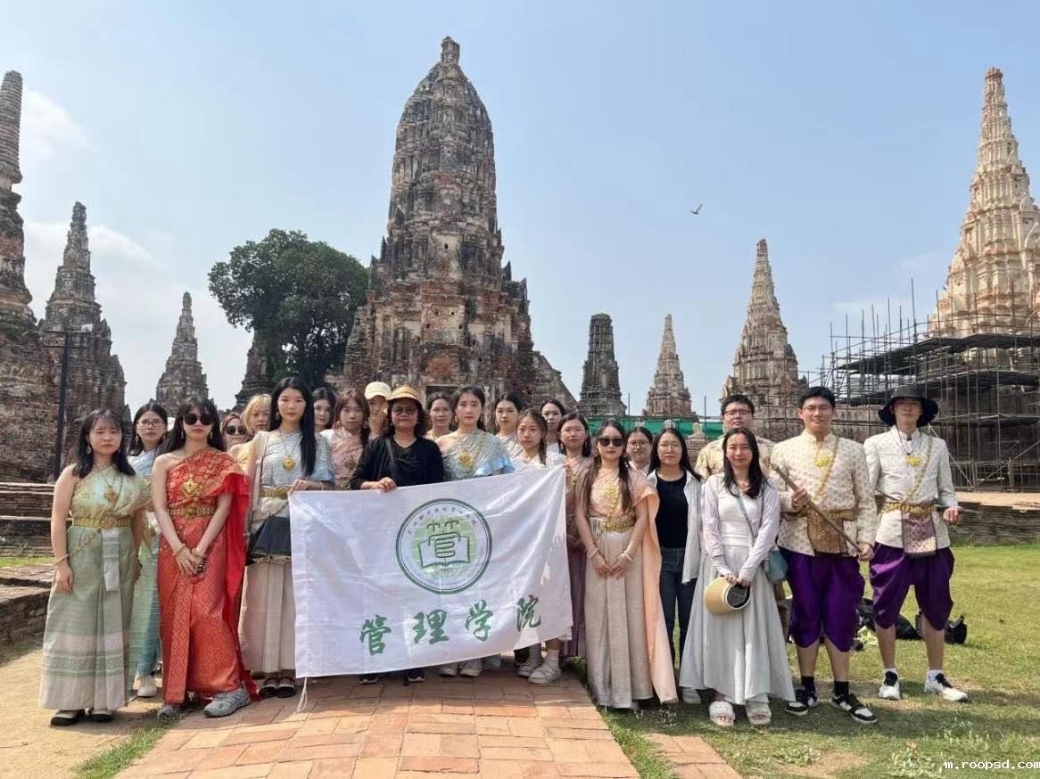 近日,伟德app入口管理学院师生开展了首届“一带一路”文化交流与实践活动。本次活动由管理学院院长彭建平教授及学院两位老师带队,由管理学院22位优秀学生组队参与。本次项目主要依托泰国巴吞他尼大学进行学术和文化交流。