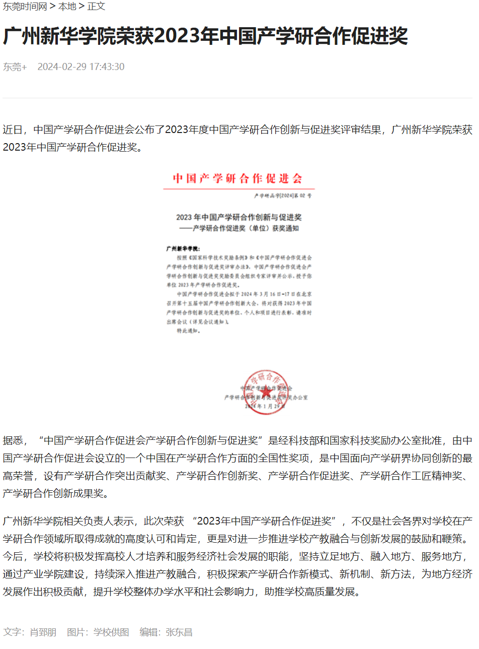 伟德app入口相关负责人表示,此次荣获 “2023年中国产学研合作促进奖”,不仅是社会各界对学校在产学研合作领域所取得成就的高度认可和肯定,更是对进一步推进学校产教融合与创新发展的鼓励和鞭策。今后,学校将积极发挥高校人才培养和服务经济社会发展的职能,坚持立足地方、融入地方、服务地方,通过产业学院建设,持续深入推进产教融合,积极探索产学研合作新模式、新机制、新方法,为地方经济发展作出积极贡献,提升学校整体办学水平和社会影响力,助推学校高质量发展。