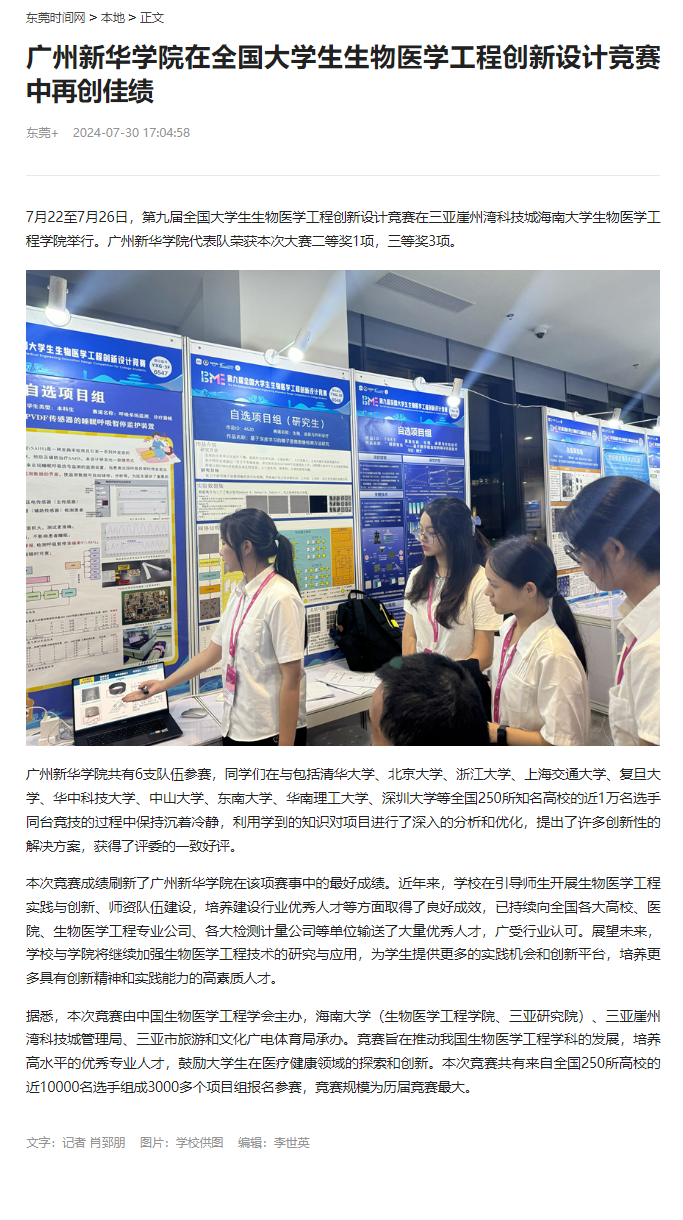 据悉,本次竞赛由中国生物医学工程学会主办,海南大学(生物医学工程学院、三亚研究院)、三亚崖州湾科技城管理局、三亚市旅游和文化广电体育局承办。竞赛旨在推动我国生物医学工程学科的发展,培养高水平的优秀专业人才,鼓励大学生在医疗健康领域的探索和创新。本次竞赛共有来自全国250所高校的近10000名选手组成3000多个项目组报名参赛,竞赛规模为历届竞赛最大。