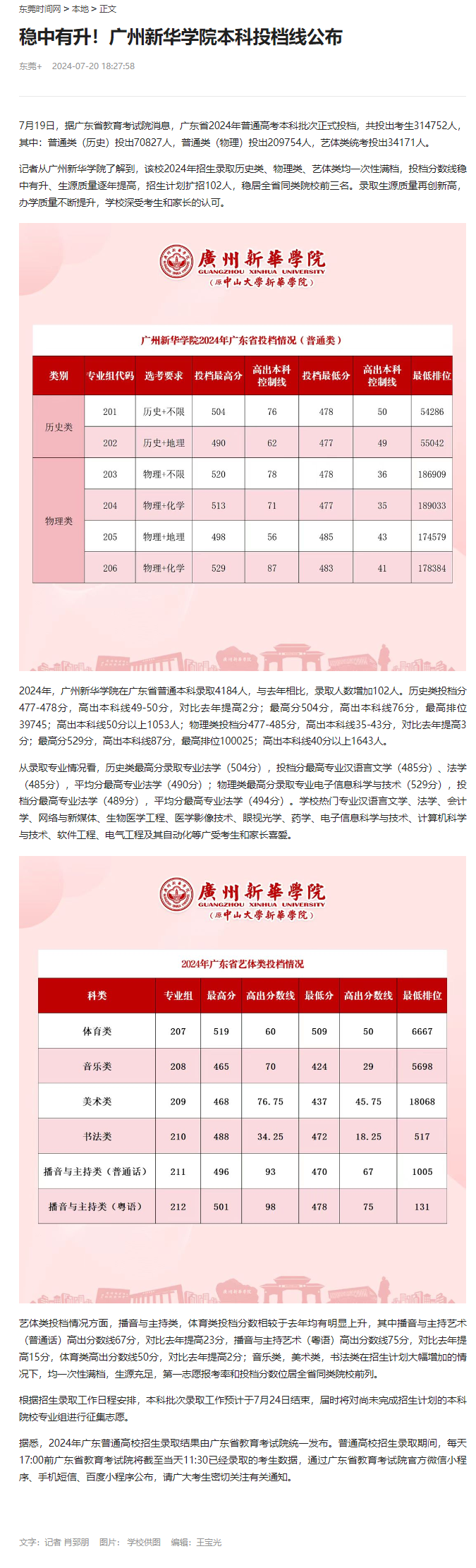 2024年,伟德app入口在广东省普通本科录取4184人,与去年相比,录取人数增加102人。历史类投档分477-478分,高出本科线49-50分,对比去年提高2分;最高分504分,高出本科线76分,最高排位39745;高出本科线50分以上1053人;物理类投档分477-485分,高出本科线35-43分,对比去年提高3分;最高分529分,高出本科线87分,最高排位100025;高出本科线40分以上1643人。
