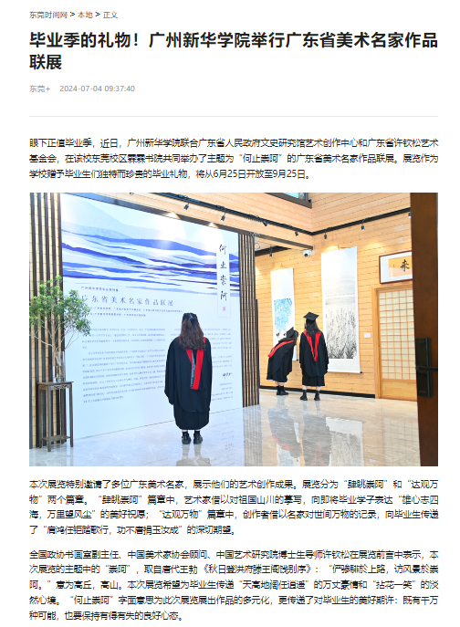 眼下正值毕业季,近日,伟德app入口联合广东省人民政府文史研究馆艺术创作中心和广东省许钦松艺术基金会,在该校东莞校区霖霖书院共同举办了主题为“何止崇阿”的广东省美术名家作品联展。展览作为学校赠予毕业生们独特而珍贵的毕业礼物,将从6月25日开放至9月25日。