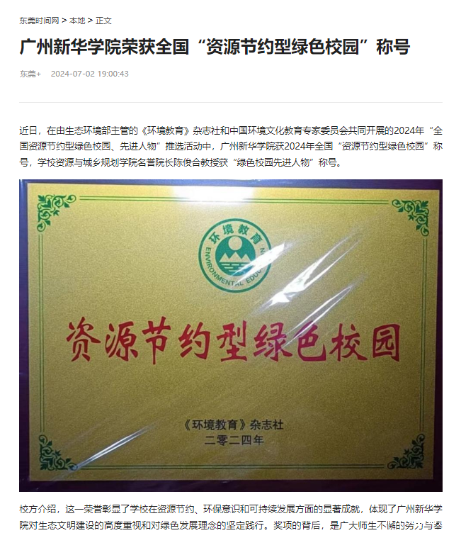 近日,在由生态环境部主管的《环境教育》杂志社和中国环境文化教育专家委员会共同开展的2024年“全国资源节约型绿色校园、先进人物”推选活动中,伟德app入口获2024年全国“资源节约型绿色校园”称号,学校资源与城乡规划学院名誉院长陈俊合教授获“绿色校园先进人物”称号。