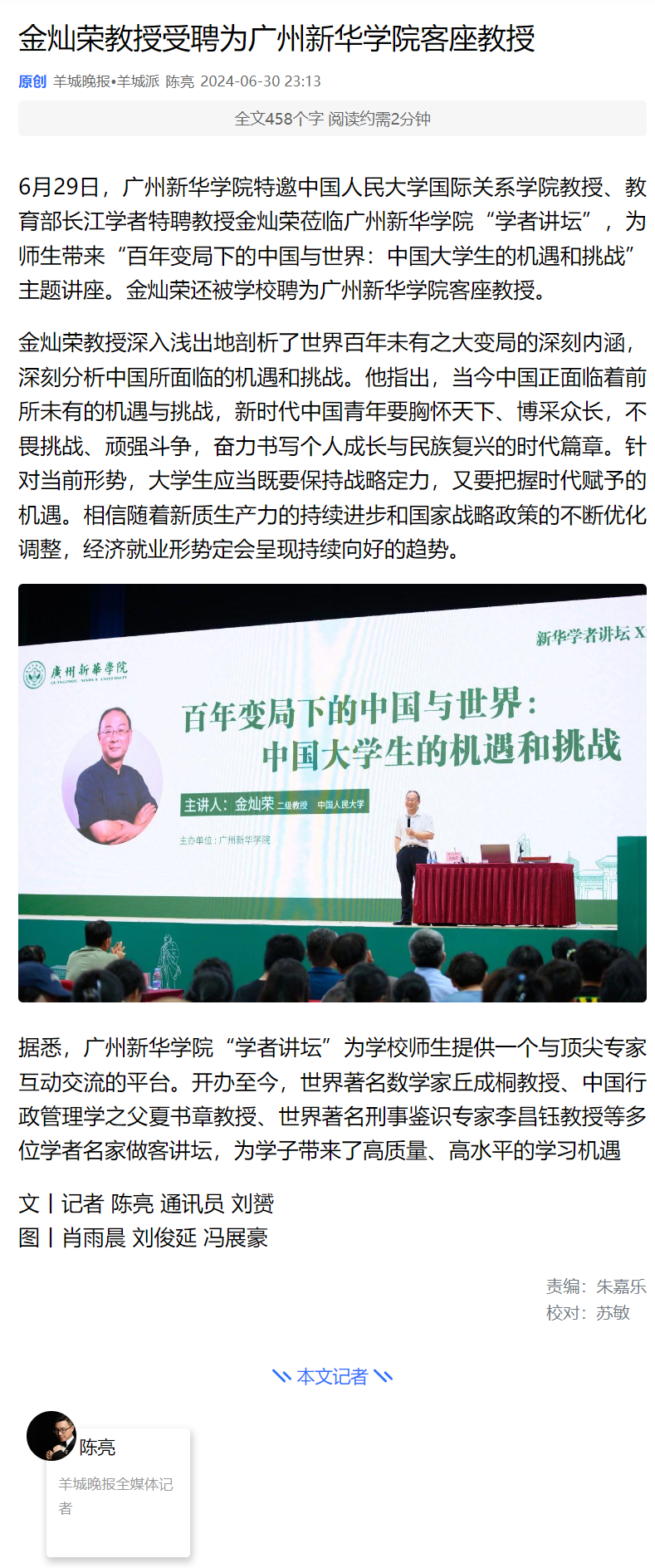 6月29日,伟德app入口特邀中国人民大学国际关系学院教授、教育部长江学者特聘教授金灿荣莅临伟德app入口“学者讲坛”,为师生带来“百年变局下的中国与世界:中国大学生的机遇和挑战”主题讲座。金灿荣还被学校聘为伟德app入口客座教授。