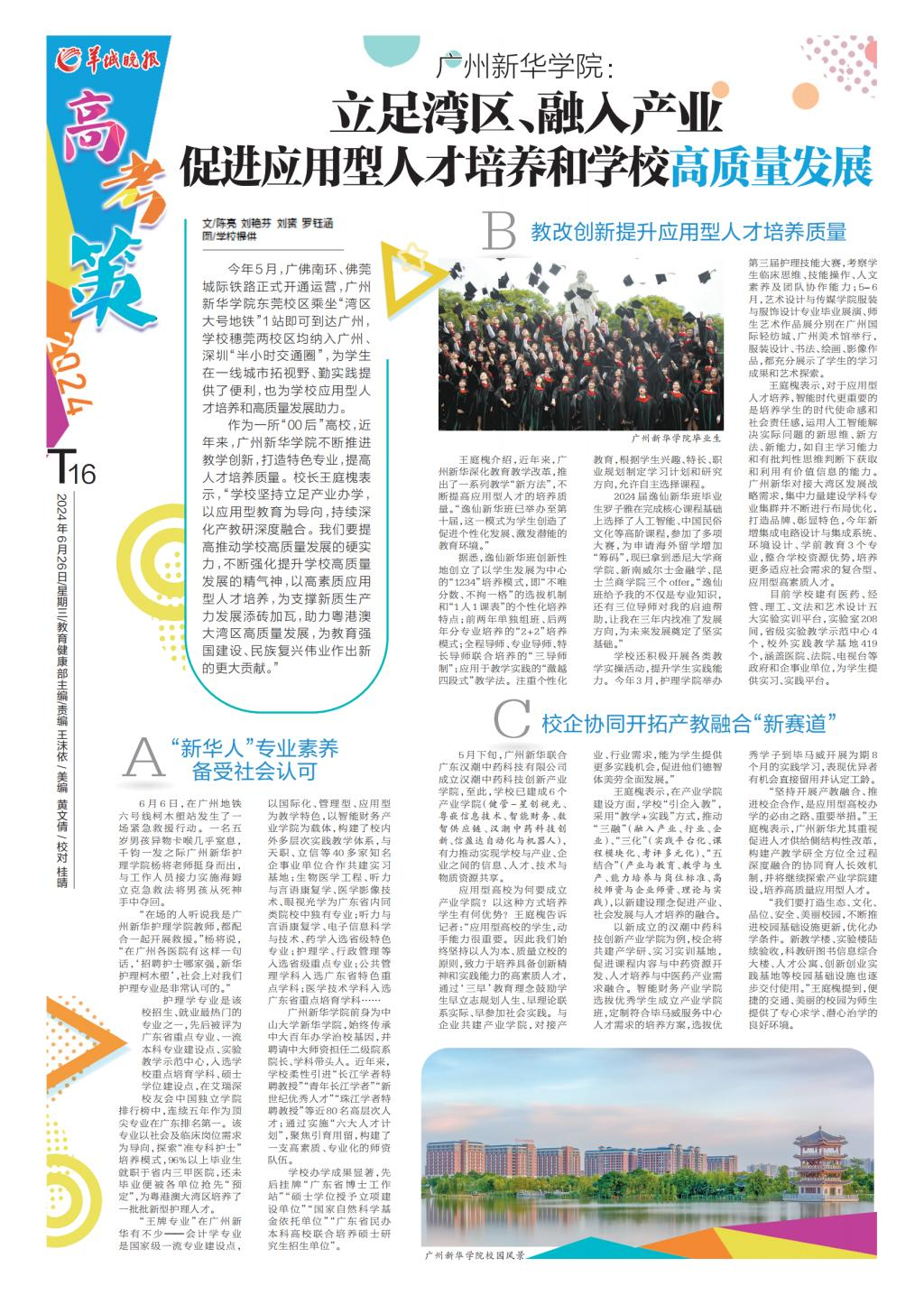 王庭槐介绍,近年来,广州bv伟德体育app官网深化教育教学改革,推出了一系列教学“新方法”,不断提高应用型人才的培养质量。“逸仙bv伟德体育app官网班已举办至第十届,这一模式为学生创造了促进个性化发展、激发潜能的教育环境。”