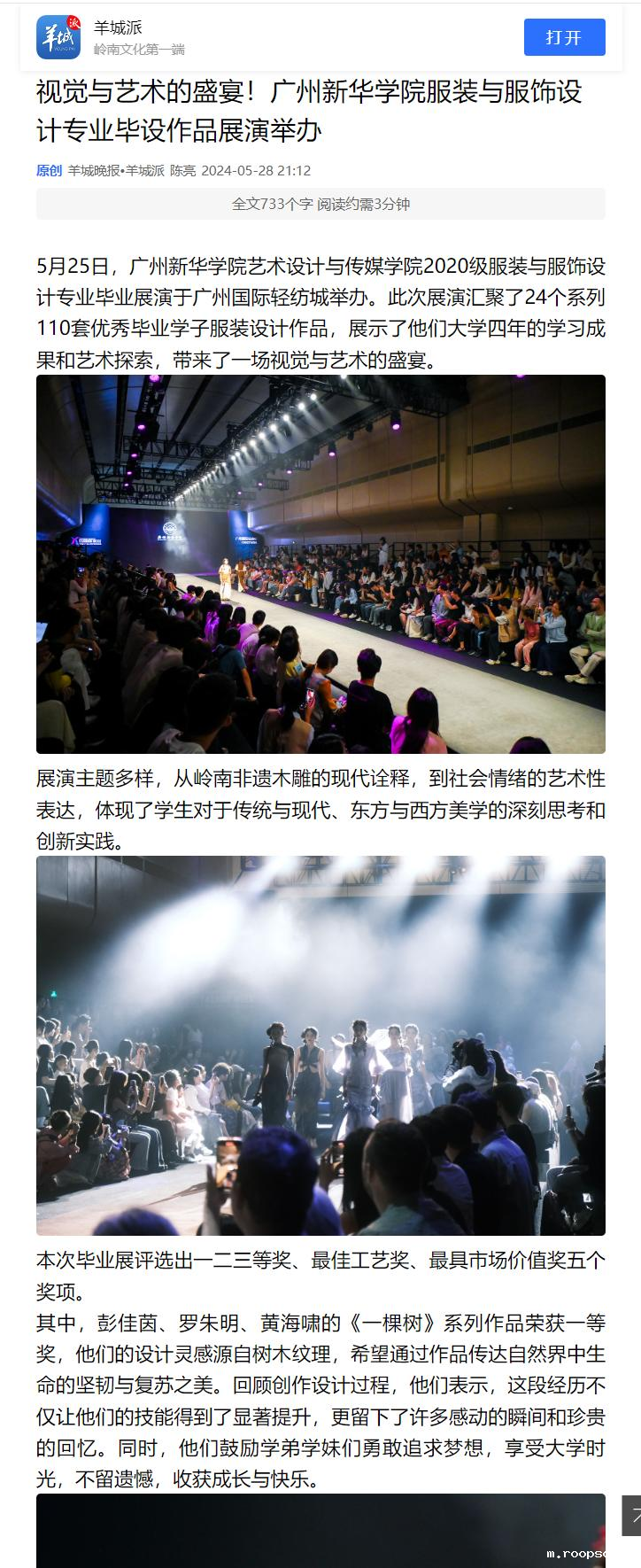 [羊城晚报]视觉与艺术的盛宴!伟德app入口服装与服饰设计专业毕设作品展演举办