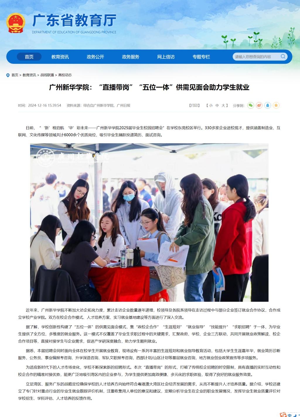 为适应新时代下的人才市场变化,学校不断探索新的招聘形式。本次“直播带岗”的形式,打破了传统校企招聘的时空限制,具有直播的实时互动性和校企合作的精准对接优势,能更广泛地吸引湾区内的企业参与,为学生提供更加高效便捷、多元化的求职体验,取得了良好的就业服务效果。