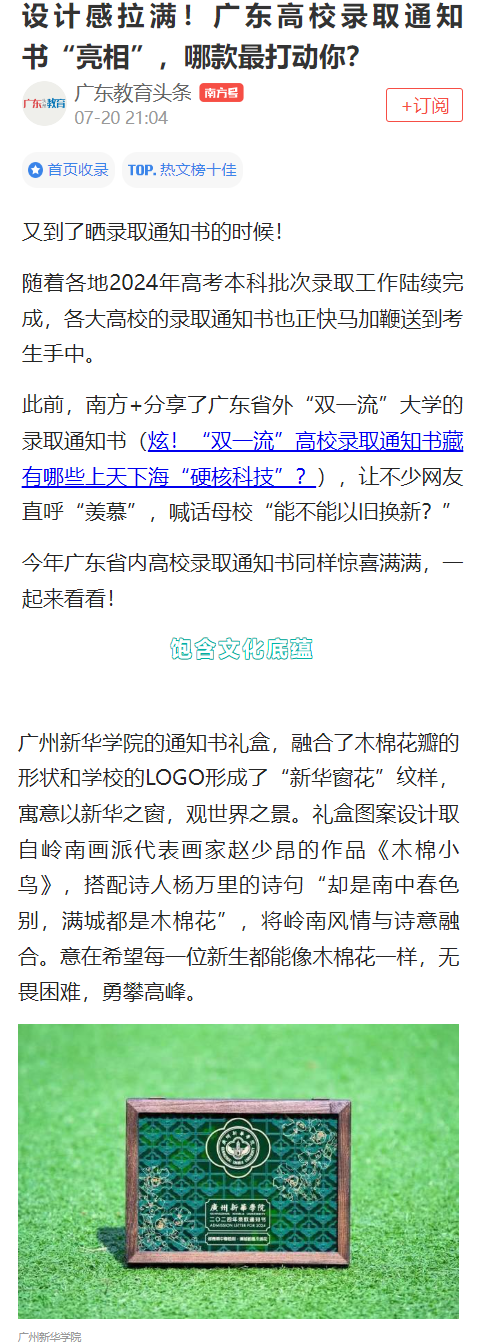 [南方日报]设计感拉满!广东高校录取通知书“亮相”,哪款最打动你?
