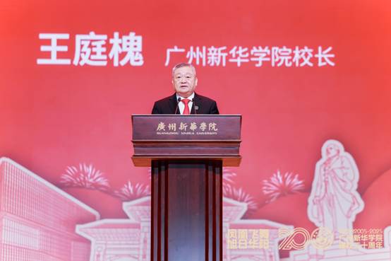 中国产学研合作促进会会长王建华回顾了二十年前参与学校筹建的难忘岁月。他特别肯定了学校立足大湾区、产教深度融合的先行优势,指出学校获批首批“中国产学研联合实验室”,在空中物流与无人机领域取得突破,并荣获中国产学研合作创新奖,在广东民办高校中表现突出。