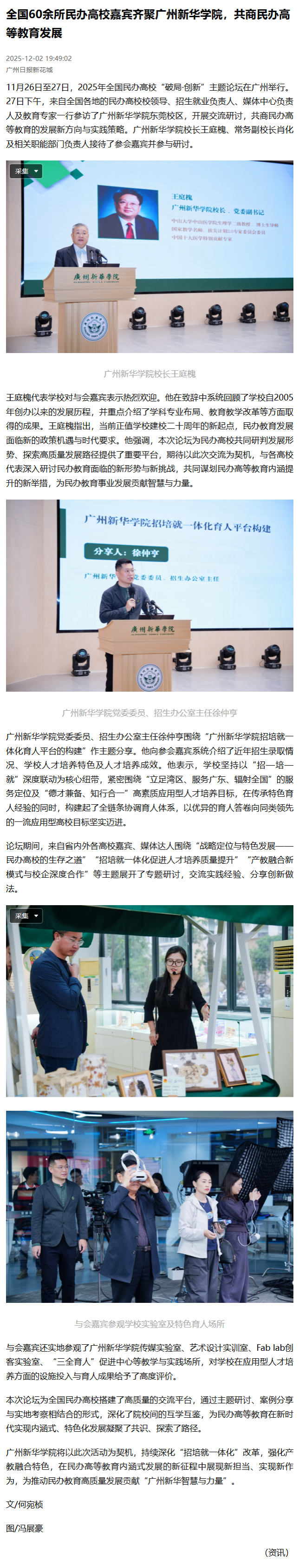 11月26日至27日,2025年全国民办高校“破局·创新”主题论坛在广州举行。27日下午,来自全国各地的民办高校校领导、招生就业负责人、媒体中心负责人及教育专家一行参访了