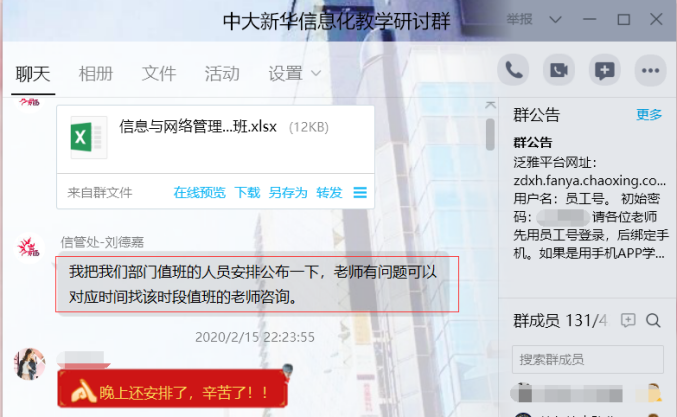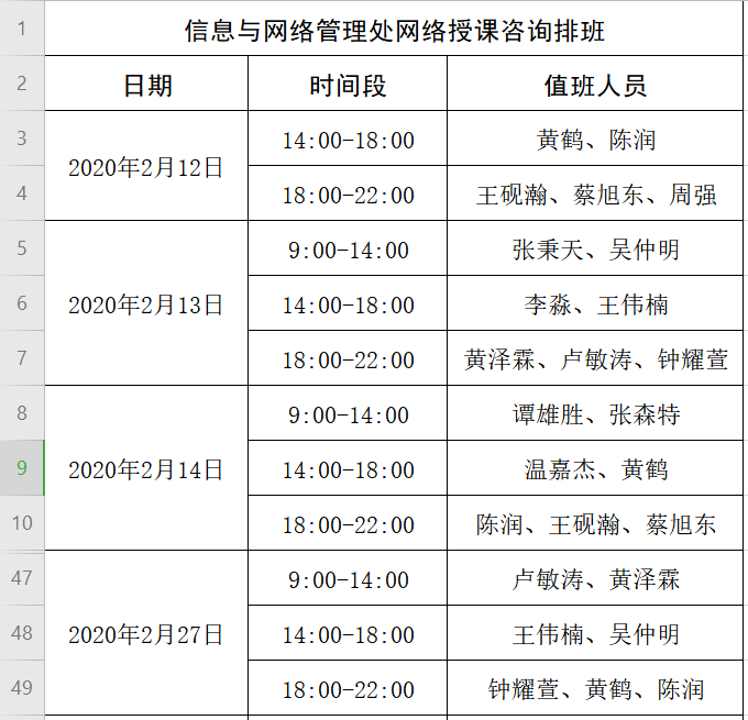 信息化教学研讨群”等相关在线课程群中实行部门内轮班制,实时解决教师在网络授课过程中出现的问题和困难。