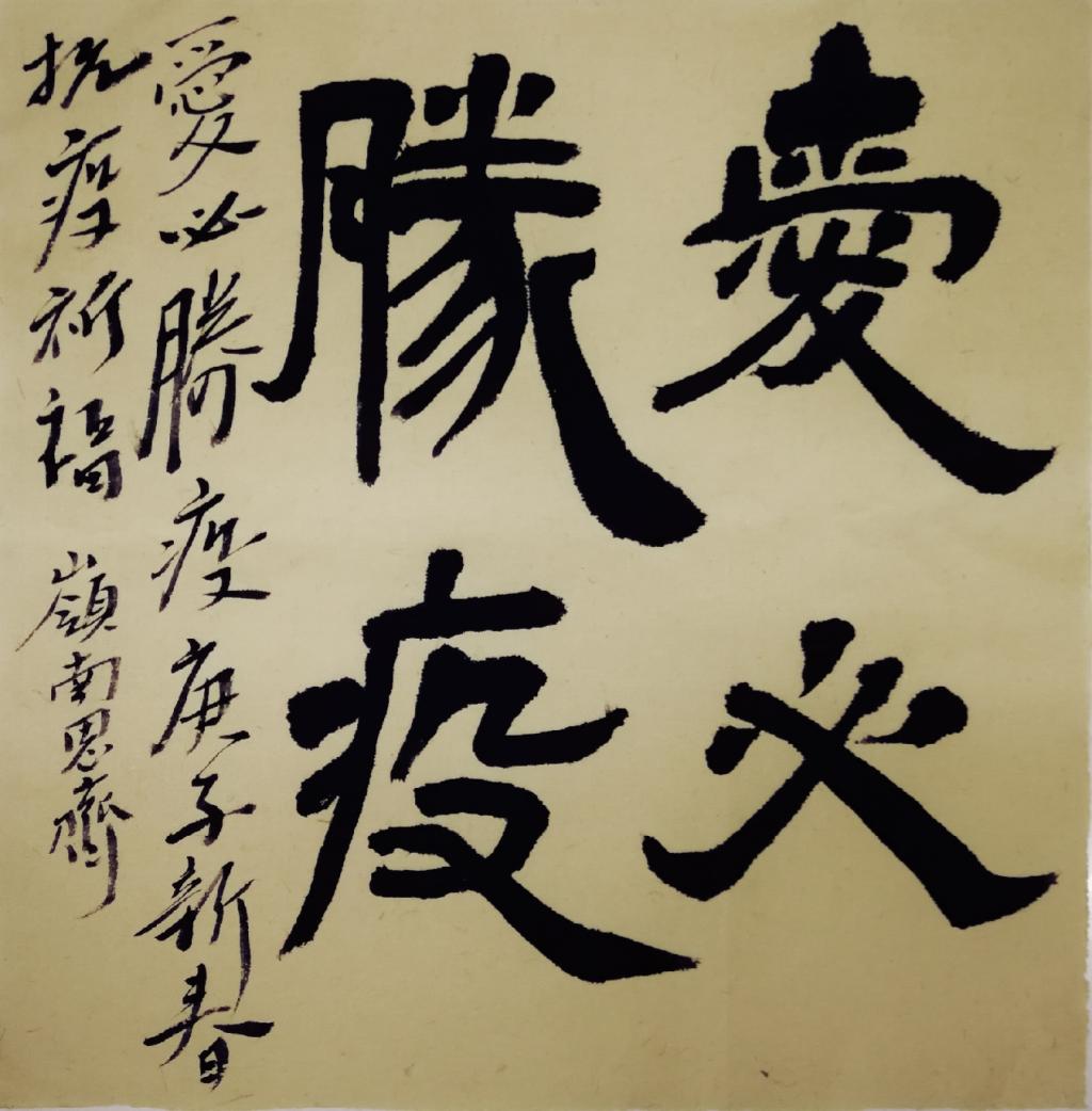 值此春节战疫期间,我用自己手中的笔,笔下的墨,战胜疫情的信心和所学的专业知识,写下“爱必胜疫”的书法作品。期待用自己的微薄力量,为中国加油,为武汉加油!