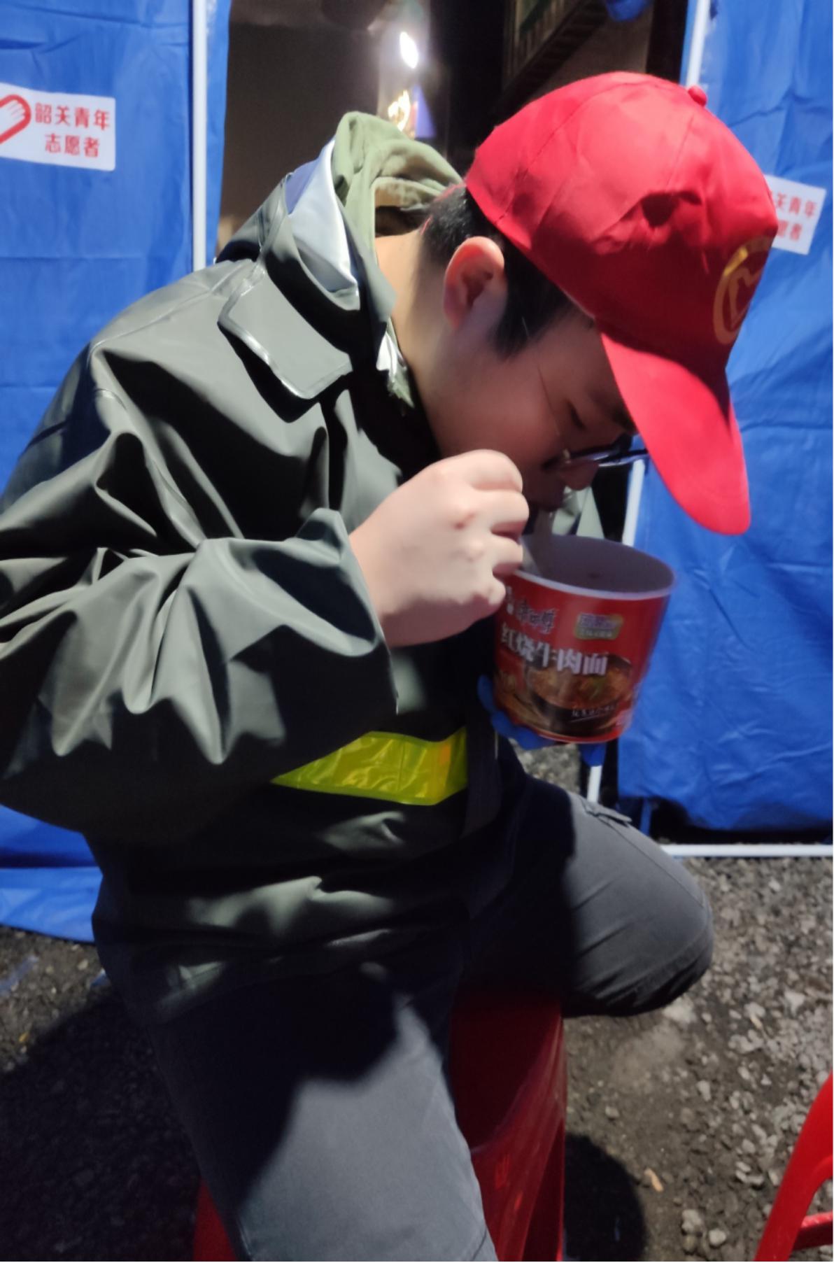 当晚11点多,气温骤降。交接前,我们先吃了一桶泡面暖了暖身子,穿戴好红马甲、口罩和护目镜后,我们正式上岗了。严寒风雨中,鲜艳的党旗和团旗在风中猎猎作响,我们毫无畏惧,直面风雨,坚守岗位,一件件红色的马甲像是冬夜里的一团团火把,一颗颗被党团组织鼓舞起来的年轻赤诚的心,彰显出防止疫情输入的责任与担当。