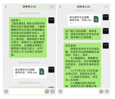 自1月26日开始,学院学生办公室全体辅导员坚持每日在线办公,跟踪每一位学生每天的健康动态,特别针对重点疫区的学生,每天逐一跟进了解学生健康状况,确保无遗漏。