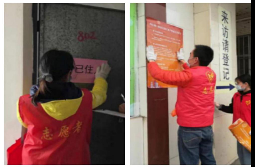 陈军同志(左图右一)在疫情防控志愿服务工作现场