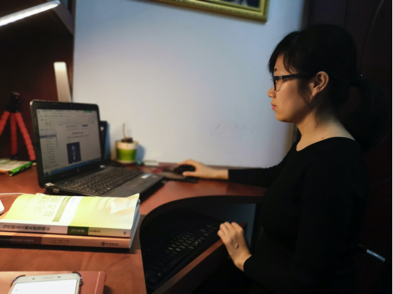 张丹丹老师在进行网络授课准备工作