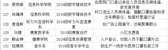 抗击疫情,青年先行。在这场特殊的没有硝烟防“疫”战中,我校涌现出了投身家乡保卫工作的经贸学子袁德洲、与母同行投身口罩包装工作的音乐系学子陆雅琪等131名青年学生志愿者。他们积极参与社区防控工作,在做好自身防护的同时,主动协助家乡开展疫情防控志愿服务工作,踊跃投身社区疫情排查、收治、封控、服务等前沿阵地,以实际行动守护家园,为打赢疫情防控阻击战贡献了自己的青春力量,充分体现了中大
