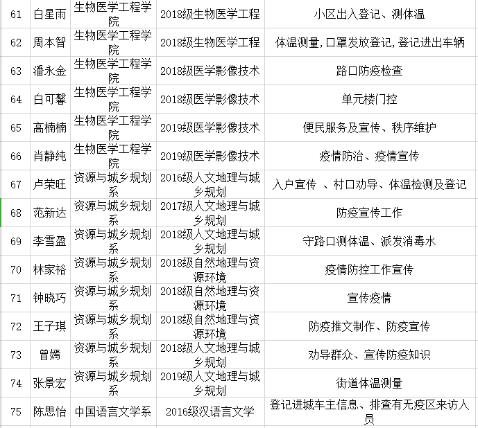 据不完全统计,我校仍有许许多多同学挺身而出,冲锋在前志愿构筑起疫情防控的青春战线