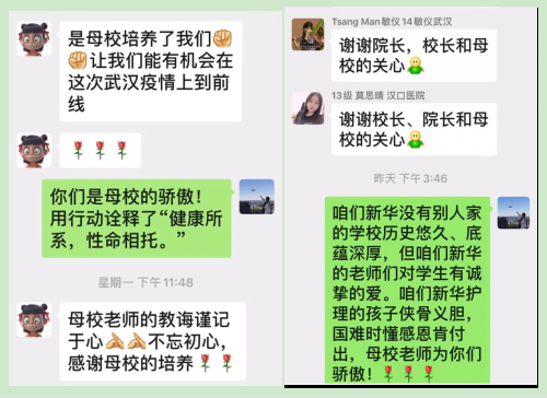 驰援武汉抗疫校友群”,每天通过微信群给校友们打气加油,传递母校师生的关爱,给他们带去满满的正能量。