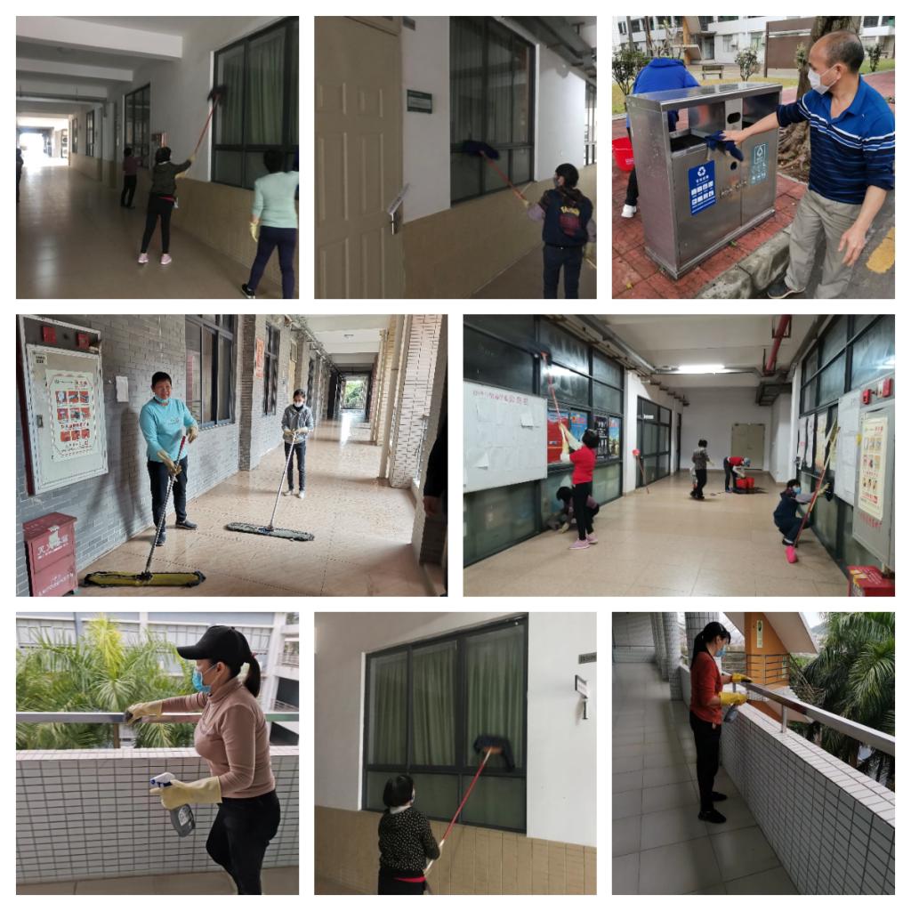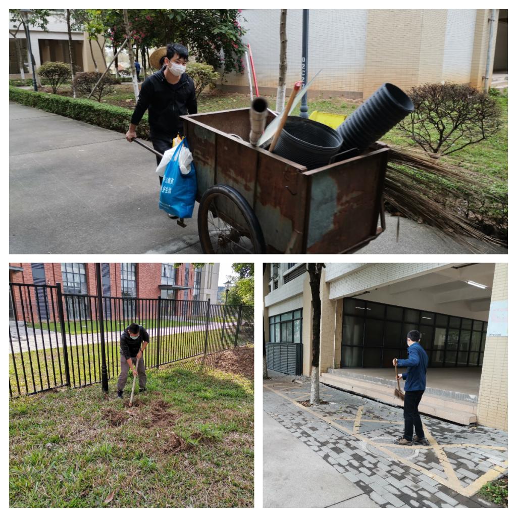 校园管理服务中心工作人员们细心清理教学区、办公区
