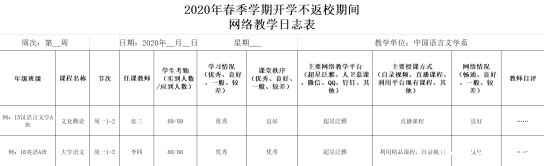 指导教学秘书设计的《开学不返校期间网络教学日志表》
