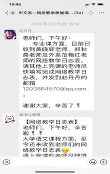 及时、集中的线上教学交流,不仅提升了线上教学的实效,还保证了中文系线上教学的教学质量,而且很好地营造了温馨有爱、积极向上、团结和谐的工作氛围,一次次地增强了“暖暖中文”全系教师的归属感。