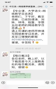 林玮老师认为,看似简单的“教学日志”的填报,实际上是对学情的动态化关注,这不仅有助于任课老师在动态中关注把握、处理好教学细节,也有助于我们对全系线上教学课程的全面了解,有效保证全系教学工作的顺利推进。