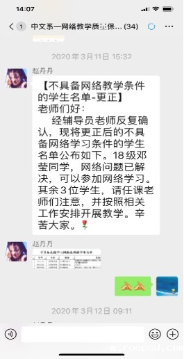 针对网络困难的学生情况,林玮老师与辅导员李靖、教学秘书及时沟通