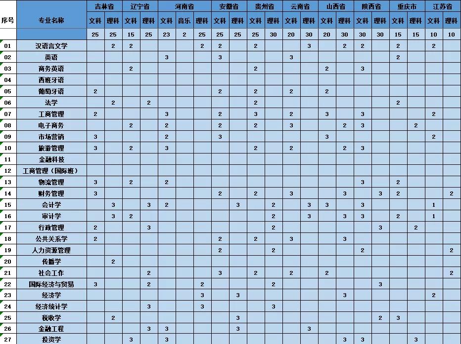 2020年我校普通高考招生计划为4628人,其中广东省3812人,外省770人,预留计划46人,招生专业达48个,涵盖经济学、法学、教育学、文学、理学、工学、医学、管理学、艺术学等九大学科门类,面向全国18个省(直辖市、自治区)招生:广东、海南、湖南、广西、福建、江西、四川、山东、吉林、辽宁、河南、安徽、贵州、云南、山西、陕西、重庆、江苏,新增专业:眼视光学(广州校区)、金融科技(东莞校区)。