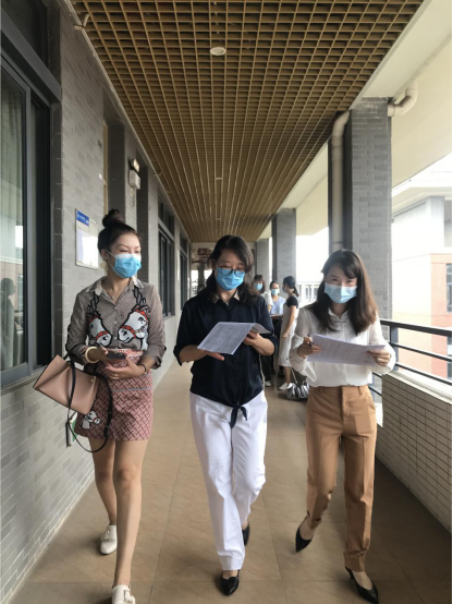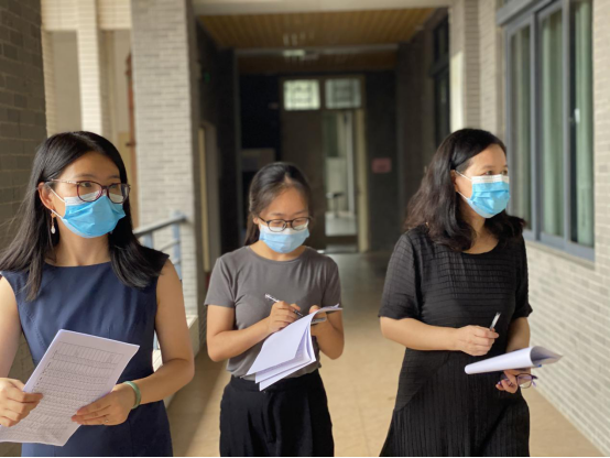 外国语学院执行院长廖益清(右)、院长助理兼大学外语教学中心副主任何瑜(左)、教务秘书何燕(中)在巡课