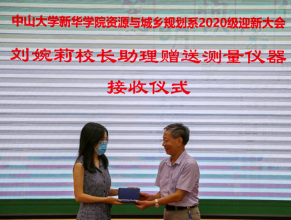 随后,刘霖霖向资源与城乡规划系赠送测量仪器,且勉励新生要刻苦学习专业技能,充分发挥测量仪器在教学和实践中的作用,将资源与城乡规划系的优良学风发扬光大。