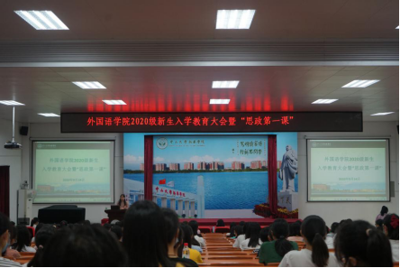 9月14日下午,外国语学院2020级新生入学教育大会暨思政第一课顺利举行。外国语学院(以下简称“外院”)党总支书记秦荔、执行院长廖益清、副院长邱易安、党总支副书记欧衍伽、院长助理兼商务英语专业副主任李文蓓、英语专业副主任李贻、西班牙语专业副主任许婷芳、西班牙语专业老师雷荷芸、葡语专业老师杨镒境以及全体辅导员出席,全体2020级新生参加了本次大会。本次大会由欧衍伽副书记主持。