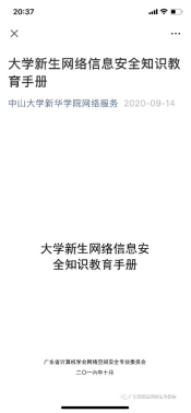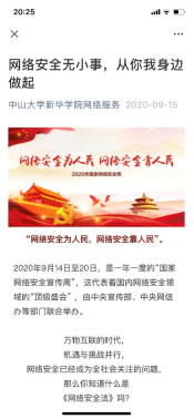 9月14日,国家网络安全宣传周的第一天也是我校2020级新生入校的第一周,信息与网络管理处在公众号“中山大学