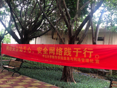 信息与网络管理处通过在两校区悬挂“网络安全为人民,网络安全靠人民”“网络安全始于心,安全网络鉴于行”横幅,同时在两校区滚动播放网络安全公益广告及优秀网络安全作品,提升宣传效果,营造安全上网、依法上网的良好氛围。