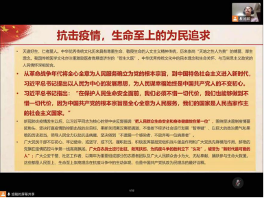 10月25日,健康学院党总支书记、副院长周旭毓以“在为人民服务中茁壮成长”为题,为健康学院百余名2020级新生讲授了一堂精彩的线上“思政第一课”。健康学院党总支副书记马丽娟及全体师生党员共同参与学习。