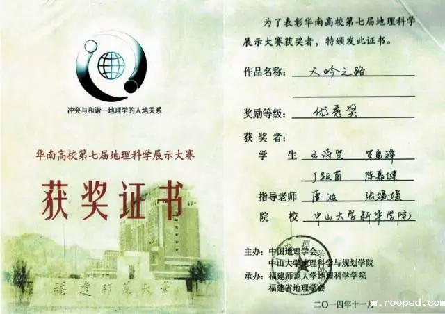 我系学生获得2014年第七届华南地理科学展示大赛优秀奖