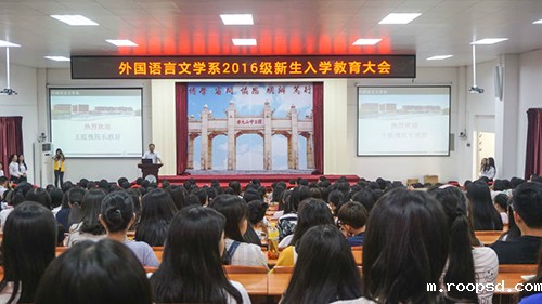 外国语学院十分重视每年的新生入学教育系列活动。该活动以专业教育为主线,重点为新生解读专业前景、了解专业学习,清楚专业目标。主要由外国语学院院长做大学之道、外院人才培养总目标和外语专业特色与发展介绍,各专业副主任做专业课程和方向介绍,优秀教师做学习技巧传授,级导师、辅导员做思想引领,优秀学生干部做社团介绍,老生代表、新生代表讲话等,入学第一个月安排学科带头人一系列教育讲座,力求让新生在适应大学环境的同时确立自己的学习目标和发展目标,为此奋力拼搏。