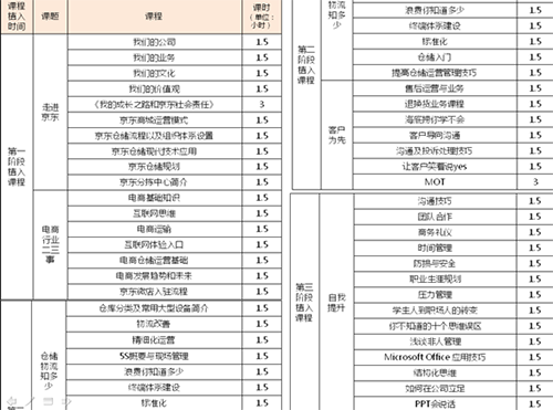 京苗班”比非京苗班学生多开设了62学时的课程,其中电子商务基础和电子商务物流管理课程采取企业和学校共同授课方式。京东选派了十多位优秀讲师来教学理论知识,弥补了学校教师往往具有很强的系统的理论知识,但却缺少丰富实战经验的不足。来自京东的十多位讲师为学生进行了丰富生动的动课,学生积极性及满意度较高,效果较好。