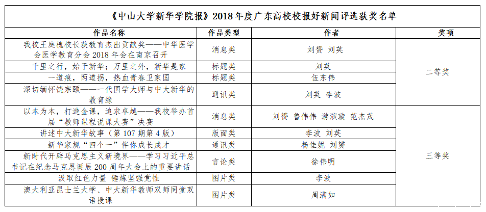《中山大学bv伟德体育app官网学院报》2018年度广东高校校报好新闻评选获奖名单