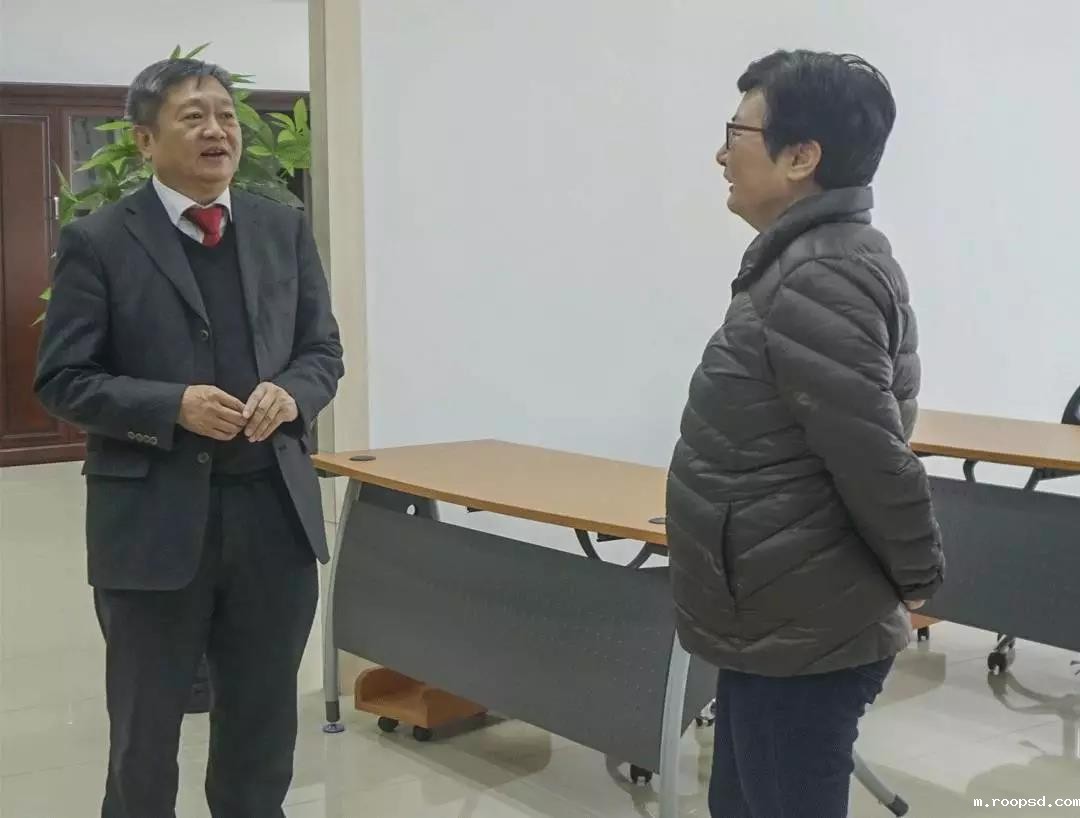 王庭槐校长(左)对话旅美学者侯建平老师(右) [刘英摄]
