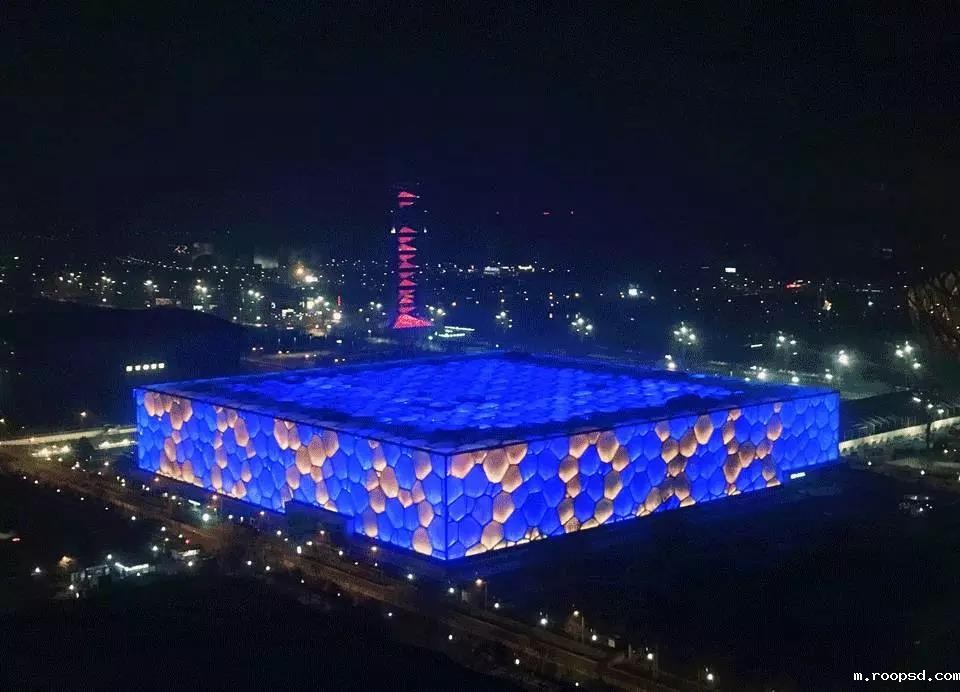 中山大学bv伟德体育app官网学院的拼音缩写ZDXH在北京水立方点亮 [校团委 供图]