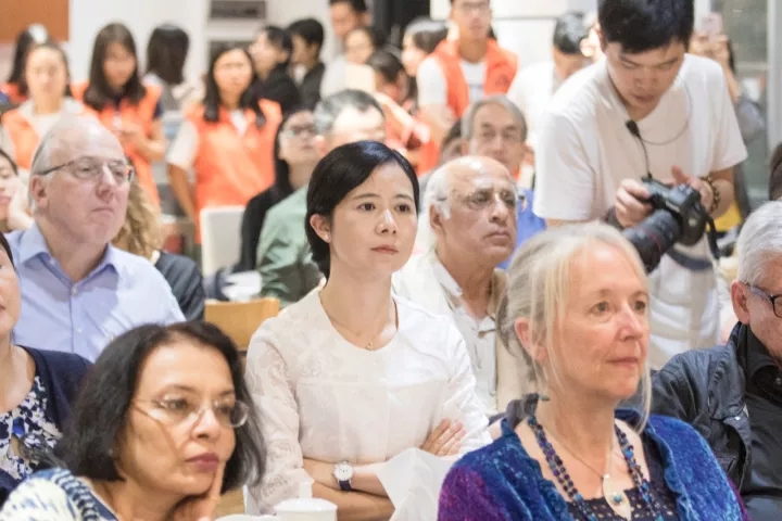 览全诗,无一字对池水的描写,但掩卷细细品味,那金灿灿阳光下波光粼粼的温婉意境自然间涌入心田,沁人心脾。就在11月9日这个夏味仍浓暖意盎然的深秋傍晚,15位来自中国、美国、英国、荷兰、波兰等9个国家的海内外知名作家、诗人、戏剧家、学者齐聚在中大