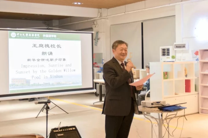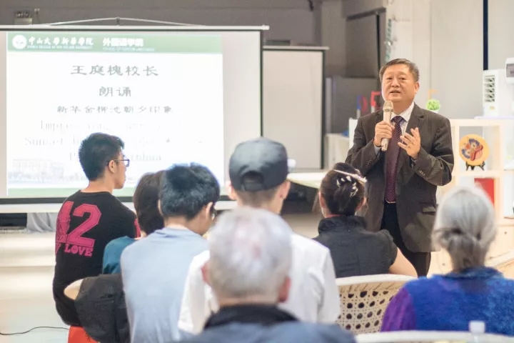 学子、对青年教师的爱与期盼,配以中山大学作家写作营创始人戴凡教授优美畅达的英文翻译,赢得现场听众的阵阵掌声。来自英国的著名诗人Mandy Coe对这首诗歌所展现的教育理念和美好意境给予了高度评价,并为这位多才多艺的大学校长所折服,“诗人校长”的称谓也由此而来。