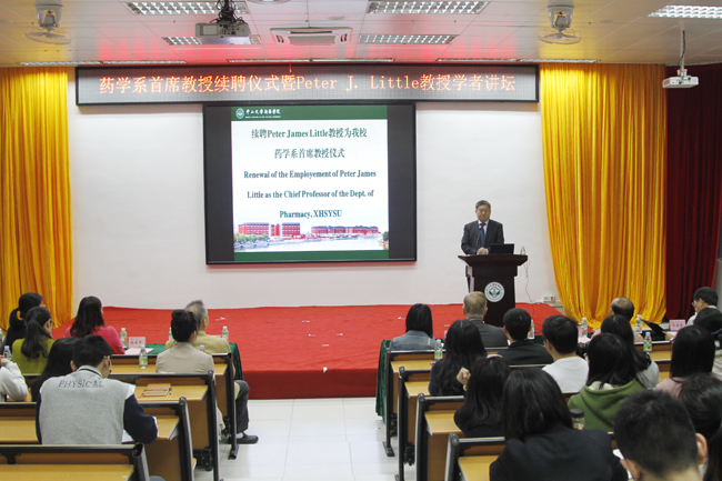 3月22日上午,我校在广州校区举行了澳大利亚昆士兰大学药学院院长、我校药学系首席教授Peter J. Little AM的续聘仪式,我校校长王庭槐、人事部部长简庚荣、外事工作与合作办学部副部长刘传华、药学系主任陈家树、药学系副主任张素中、药学系办公室主任曹颖男、护理学院首席教授Prof. Susan Holli Neidlinger等出席了仪式。药学系主任陈家树主持仪式,药学系师生代表参加。