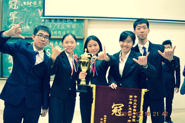 我比较难忘的一场比赛就是第十一届“思辩杯”,当时第一场抽到的就是法学,对面的阵容很强大,我们都以为赢的几率不大,但最后通过几番鏖战,我们赢了。