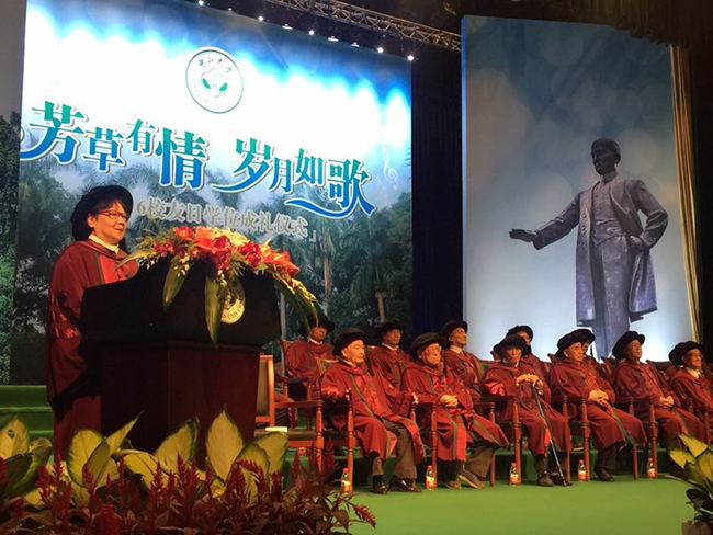 记:2016年11月12日,您在中山大学2016校友日学位成礼仪式上致辞,请问您当时是怎样的心情?