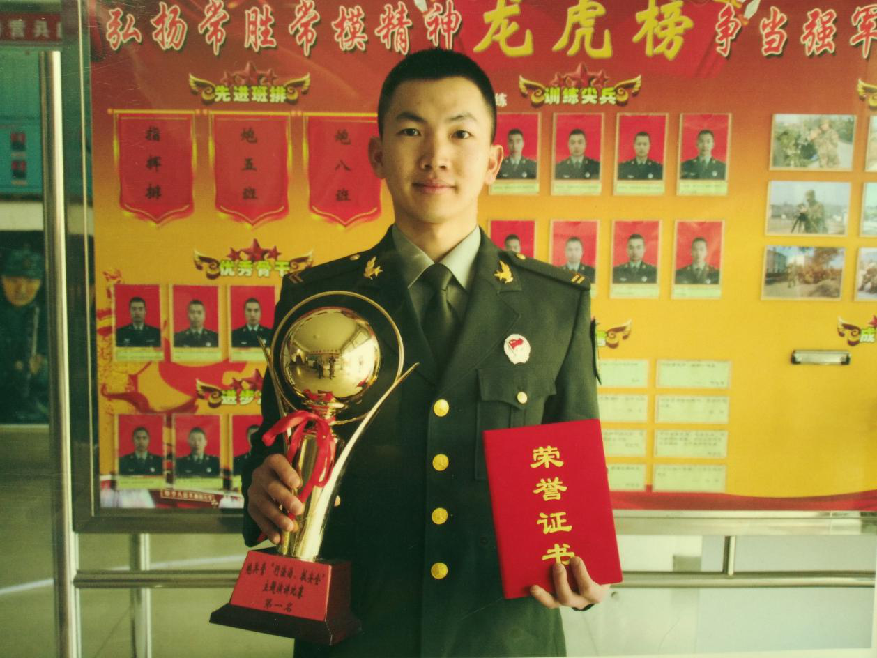 学院会计学院学生。参军入伍2年间,历任炮兵侦察、炮兵测地、炮兵阵地无线、卫生员岗位,共获得大小各类荣誉和奖项12余项,先后被评为“优秀新兵”“优秀学兵”“优秀义务兵”“优秀成长成才标兵”,荣立“三等功”1次。他不断地为自己树立新的标杆,不断地为了下一次更高的飞跃而努力。