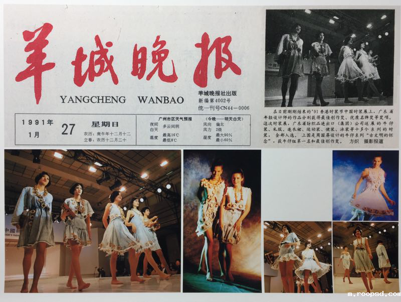 “我从1990年开始创作‘残缺美’的牛仔服装创意,当年刚刚创作出来的作品遭遇了无数冷眼和打击,绝大多数人无法接受并理解我的创意。”周国屏教授回忆道,“但后来,我还是坚持了自己的设计理念,冲破重重阻力,将作品送到香港参加国际服装大赛。”1991年1月,香港时装节中国时装展上,周国屏设计的牛仔系列“古文明的怀念”获得全体国际评委的一致好评,以满分的成绩荣获牛仔组第一名和“最佳创作奖”。1991年1月27日《羊城晚报》破例在头版做了新闻报道。怀着先锋的设计理念,创新地融合中西方思想,打破时代的审美局限,周国屏创造出了属于自己的“得意之作”。