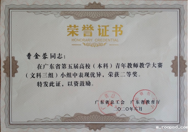 曹金蓉荣获广东省第五届高校(本科)青年教师教学大赛(文科三组)二等奖
