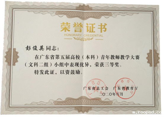 彭俊英荣获广东省第五届高校(本科)青年教师教学大赛(文科二组)三等奖