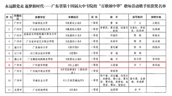 广东省第十四届大中专院校“百歌颂中华”歌咏活动歌手获奖名单